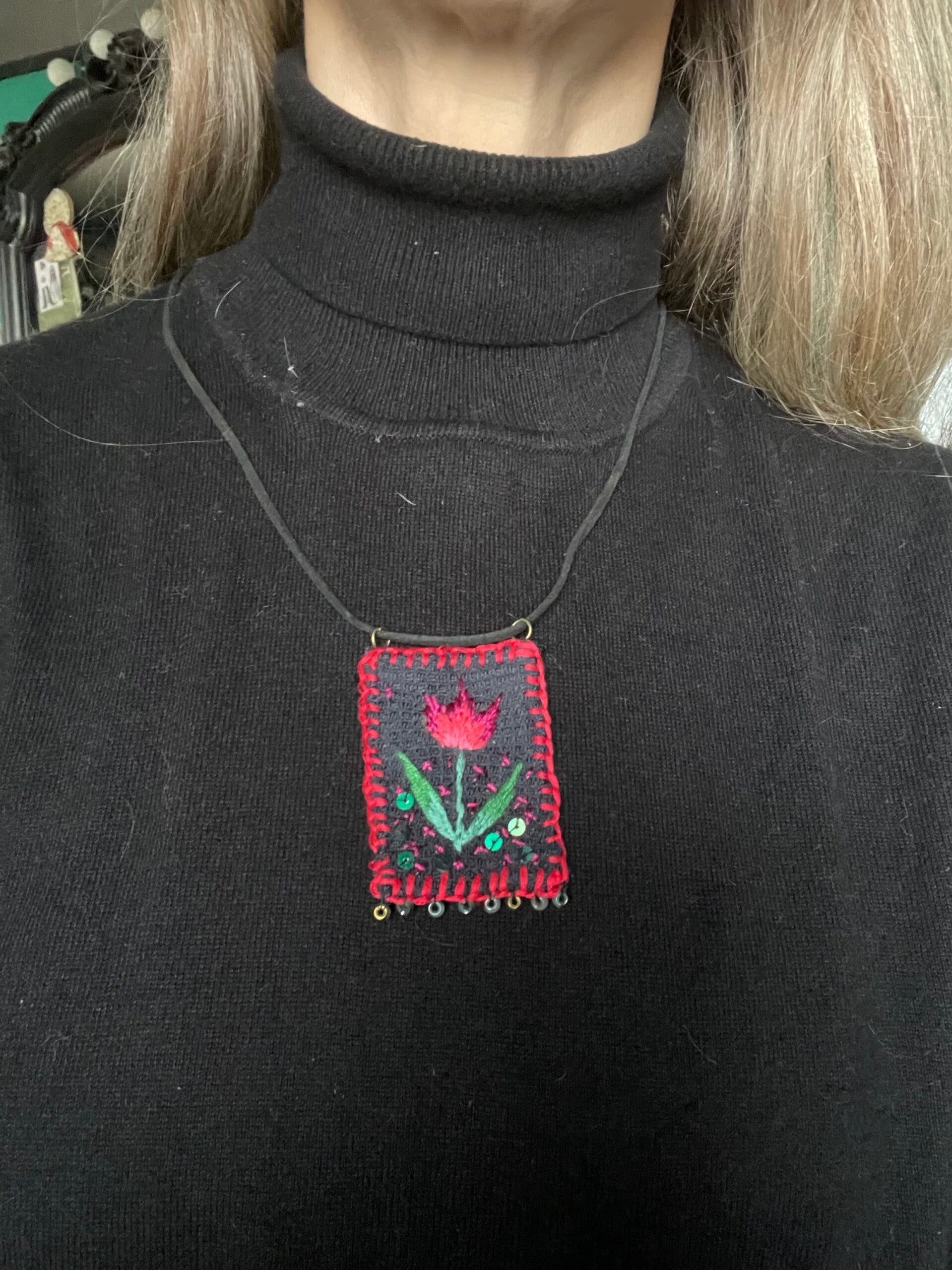 Collana ricamata a mano, pezzo unico
