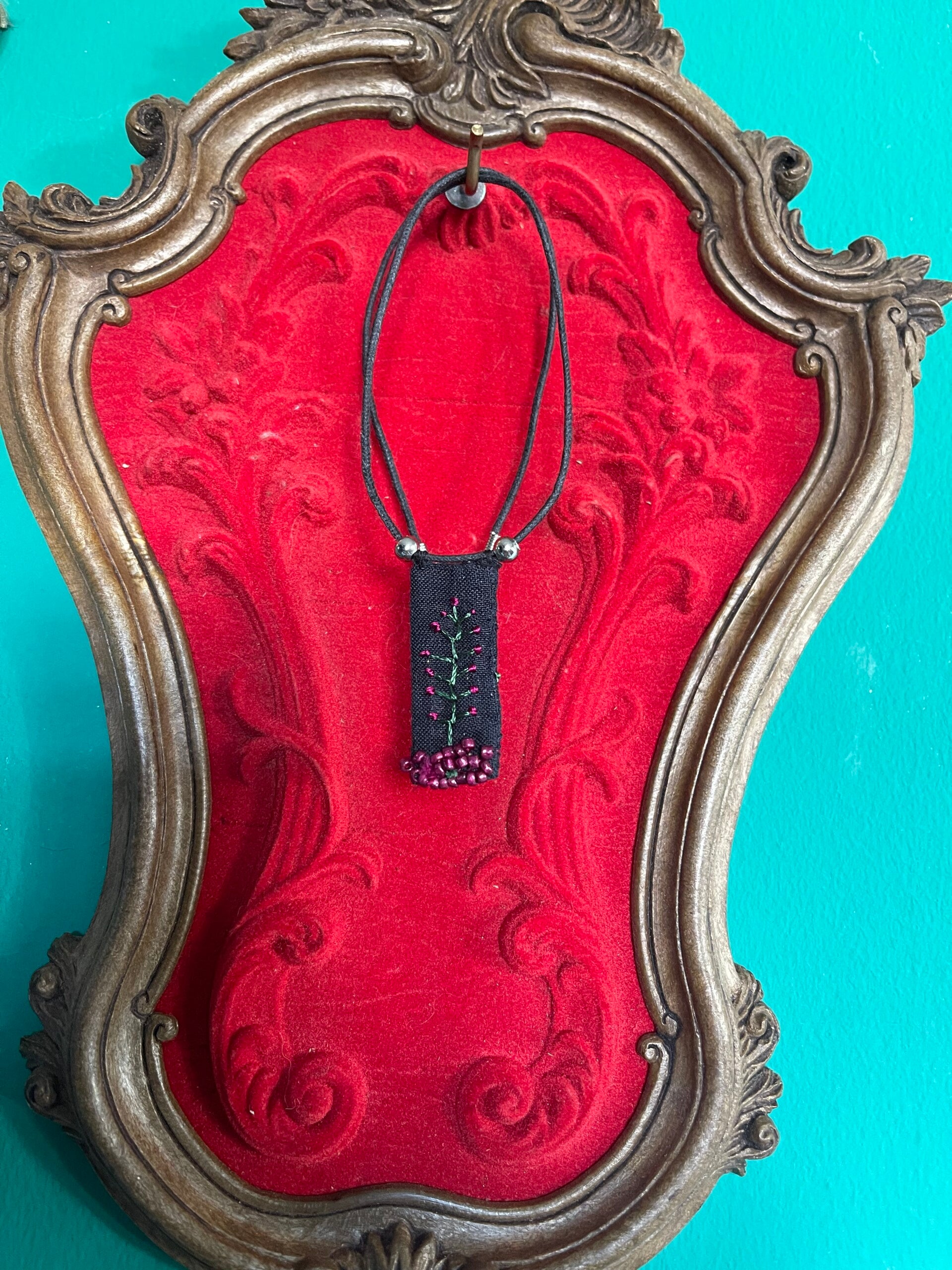 Collana ricamata a mano, misure ciondolo 1,8x 5 cm